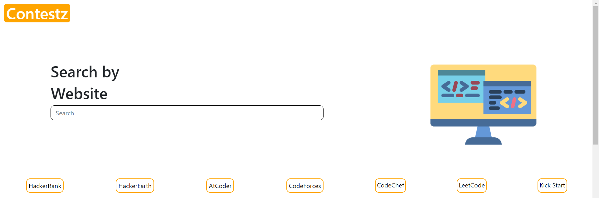 Through Upper Part of website, coders can be redirect to required coding contest's website by clicking on available options and also by writing corresponding coding website name in provided search bar and navigating through appeared suggestion list in Upper part of website.