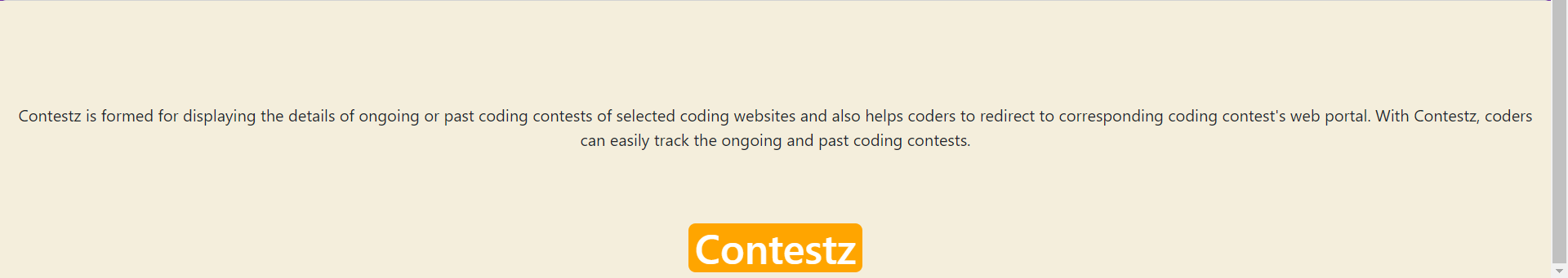Contestz is formed for displaying the details of ongoing or upcoming coding contests of selected coding websites and also helps coders to redirect to corresponding coding contest's web portal. With Contestz, coders can easily track the ongoing and upcoming coding contests.