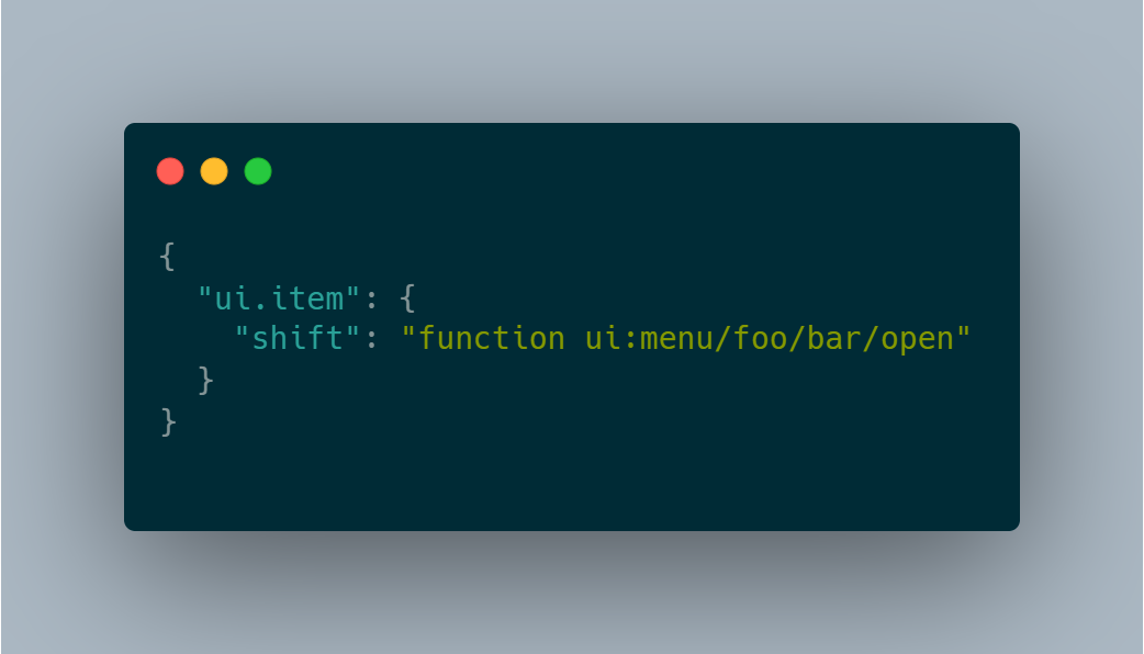 To make your menu have multiple pages, you can make the value of one of these keys an open function. in the next example, shift-clicking the item will open the page bar from the foo menu