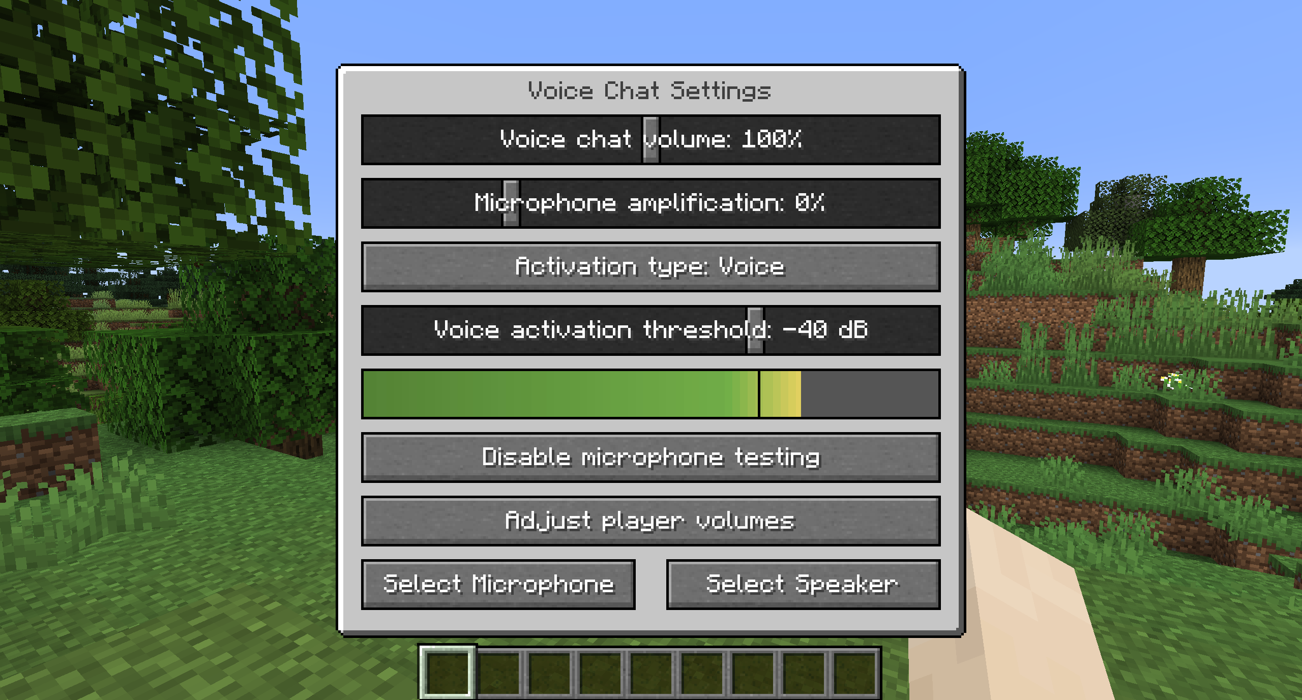 You can access the voice chat GUI by pressing the V key and pressing the settings button.