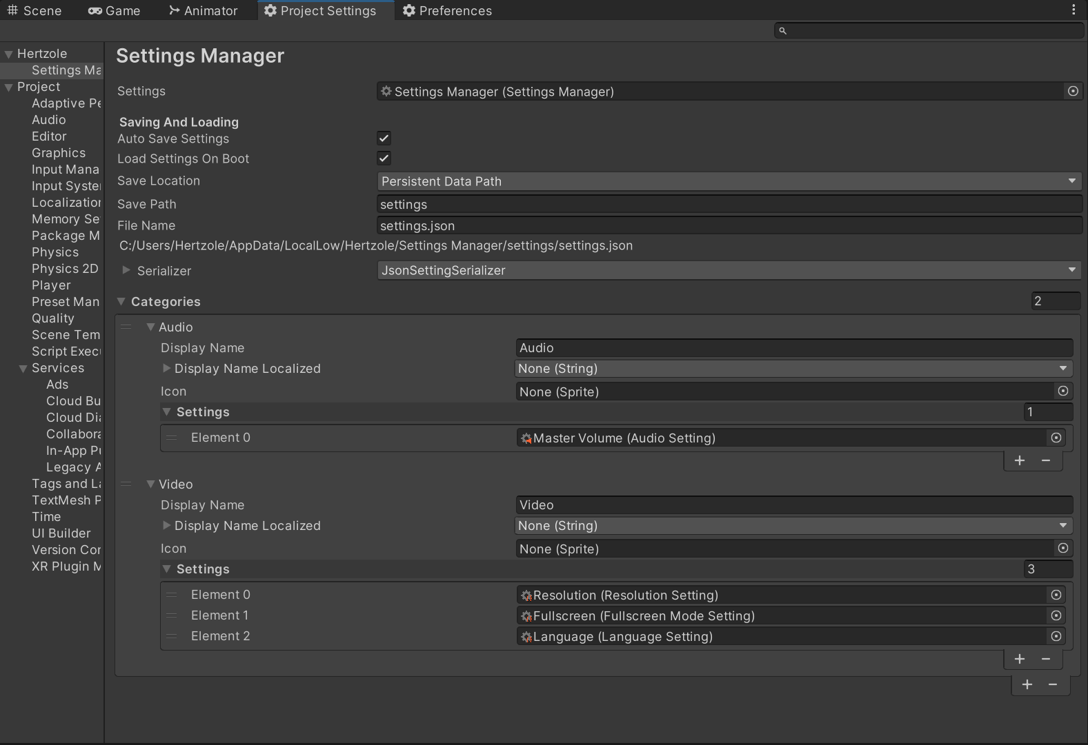 - Create a setting in your project by right clicking - Create - Hertzole - Settings - the setting of your choice