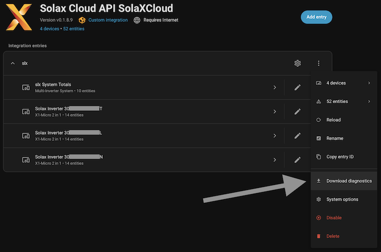 - Built-in Diagnostics Export - Download diagnostics with API responses with partial masked token and partial serial masking for privacy.