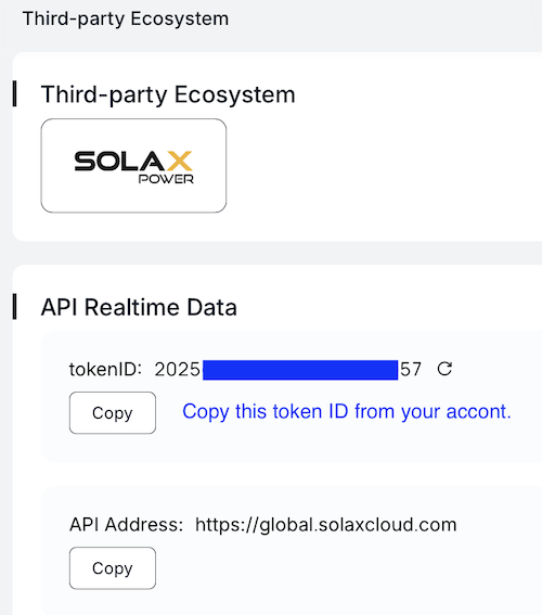 Token IDfrom SolaX Cloud Third-party Ecosystem โ API Realtime Data - System Name: Name for your solar system (used for system total sensors and entity ID prefix)