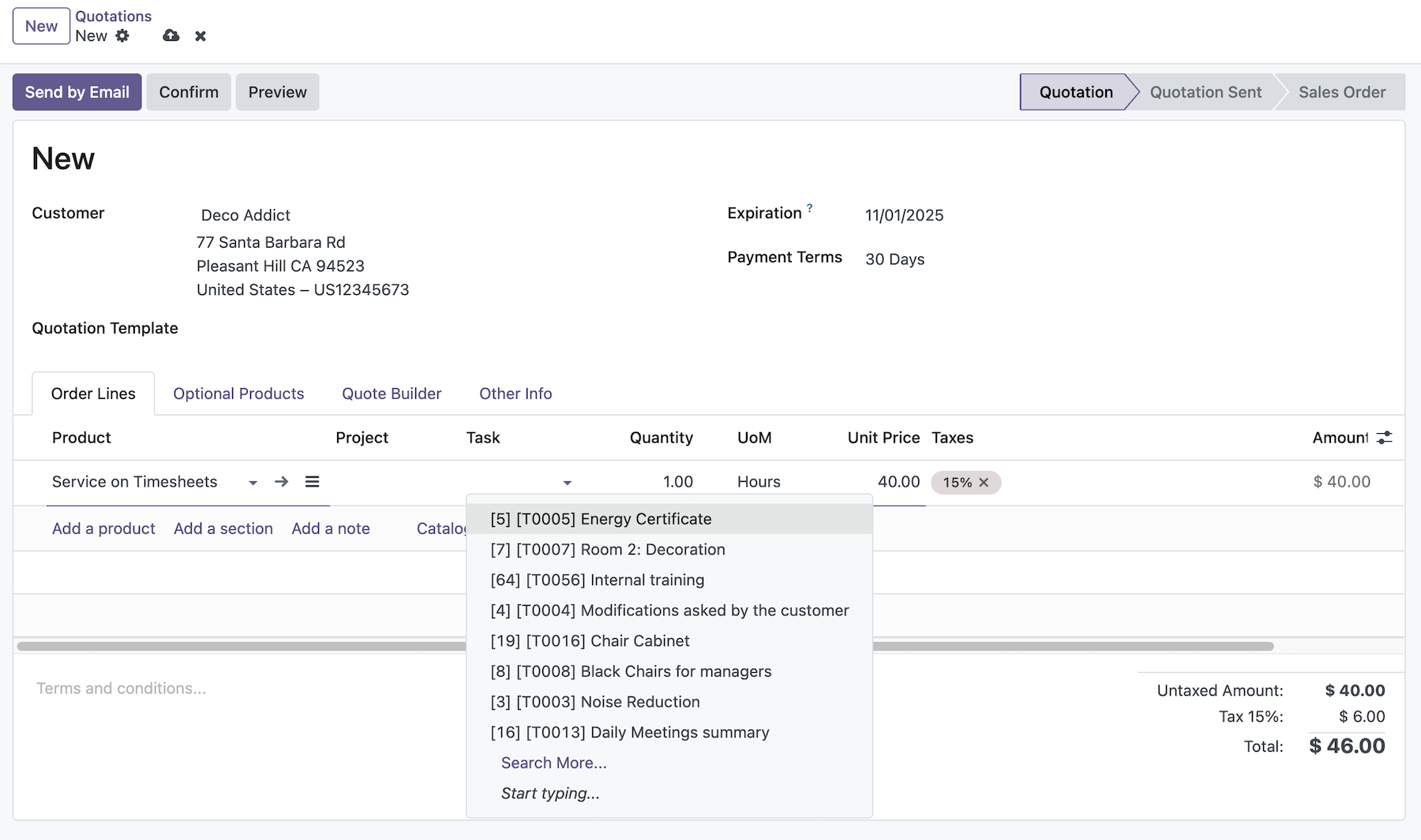 Upon confirmation, if the Task or Project are set, the automatic creation will be skipped and they will be linked to the order instead.