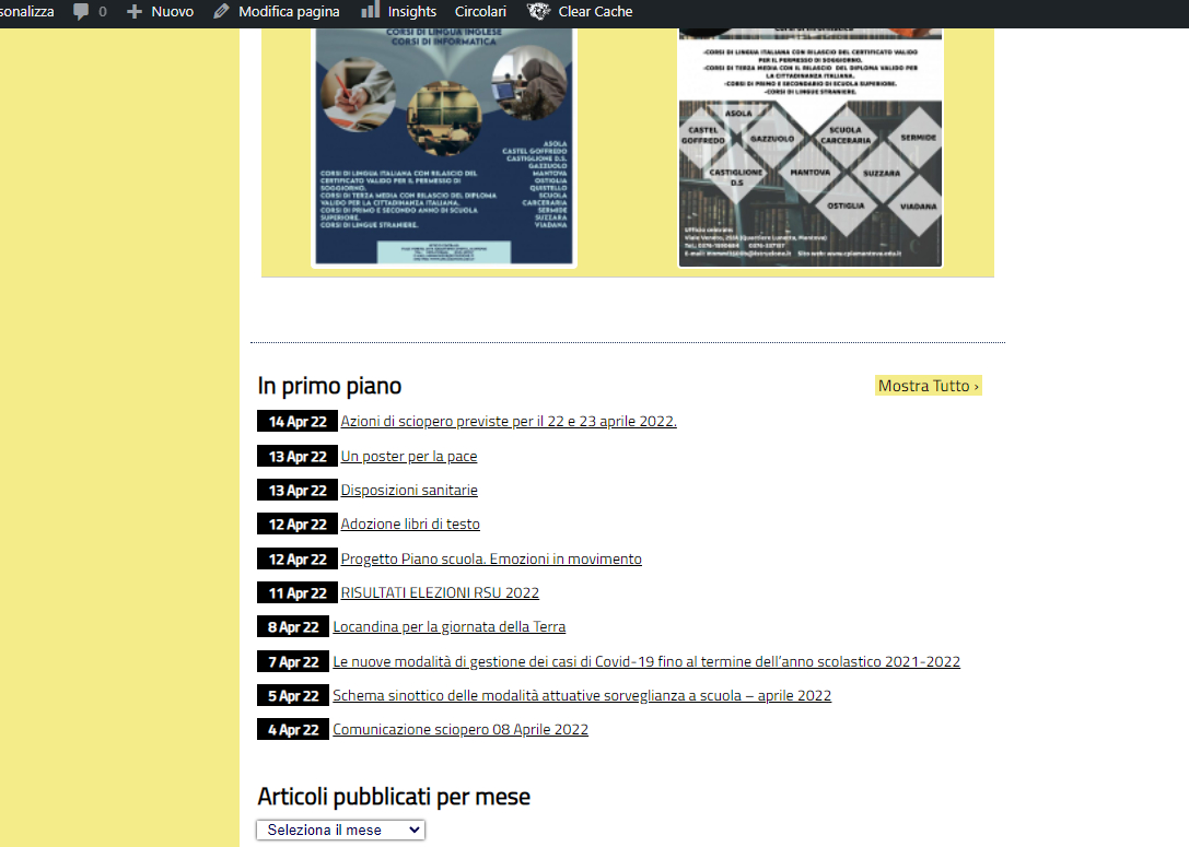 Buongiorno, volevo segnalare che dopo l ultimo aggiornamento wordpress ho riscontrato un problema nella homepage. Infatti se non sono loggato non sono visibili le ultime modifiche (si vedono solo dopo diverse ore), e neppure si aggiorna l'elenco degli articoli in primo piano (che sono presenti sul sito ma non compaiono nell elenco in home). Se poi mi loggo si vede tutto correttamente. Ho provato a eliminare la cache del sito, anche a eliminarla in quella pagina specifica, ma nulla.