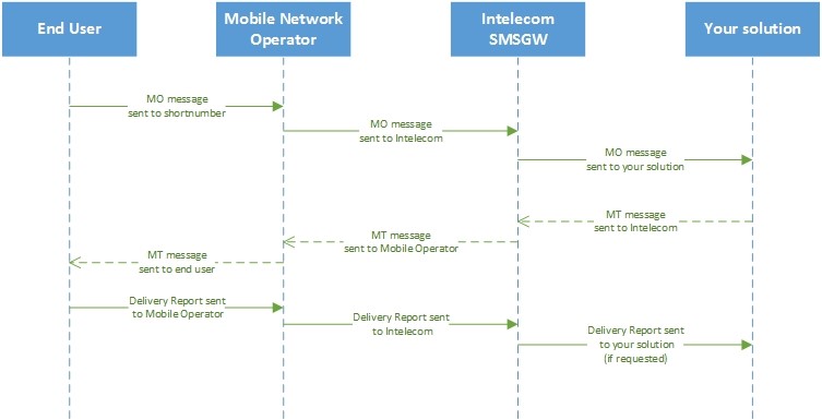 - Receiving SMS messages from end-users to your system (MO)