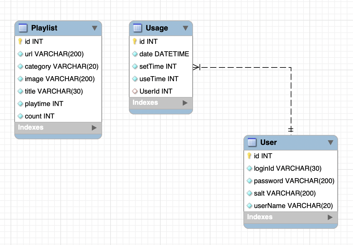 - Playlist: 플레이스트를 DB에 등록하고, 조건에 맞는(시간/카테고리) 플레이리스트를 조회한다. (등록은 서버 전용)