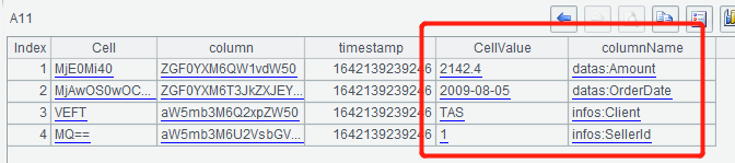 | 6 | =hbase_get(A1,"Orders","26";timeStamp:1641785173116) |
