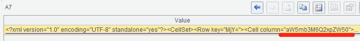 | 11 | =A10.CellSet.Row.derive(base64(Cell,"UTF-8"):CellValue,base64(column,"UTF-8"):columnName) |