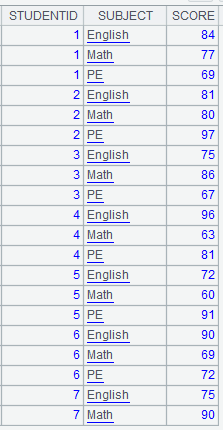 Compute each student’s total score and return the query result.