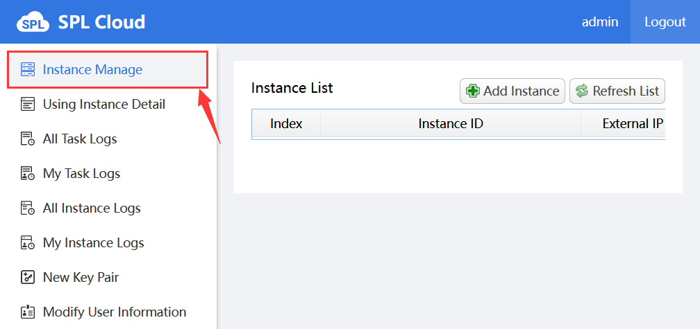 My Instance Logs: View logs of my instance. It lets you look up instance logs of the currently logged in user.
