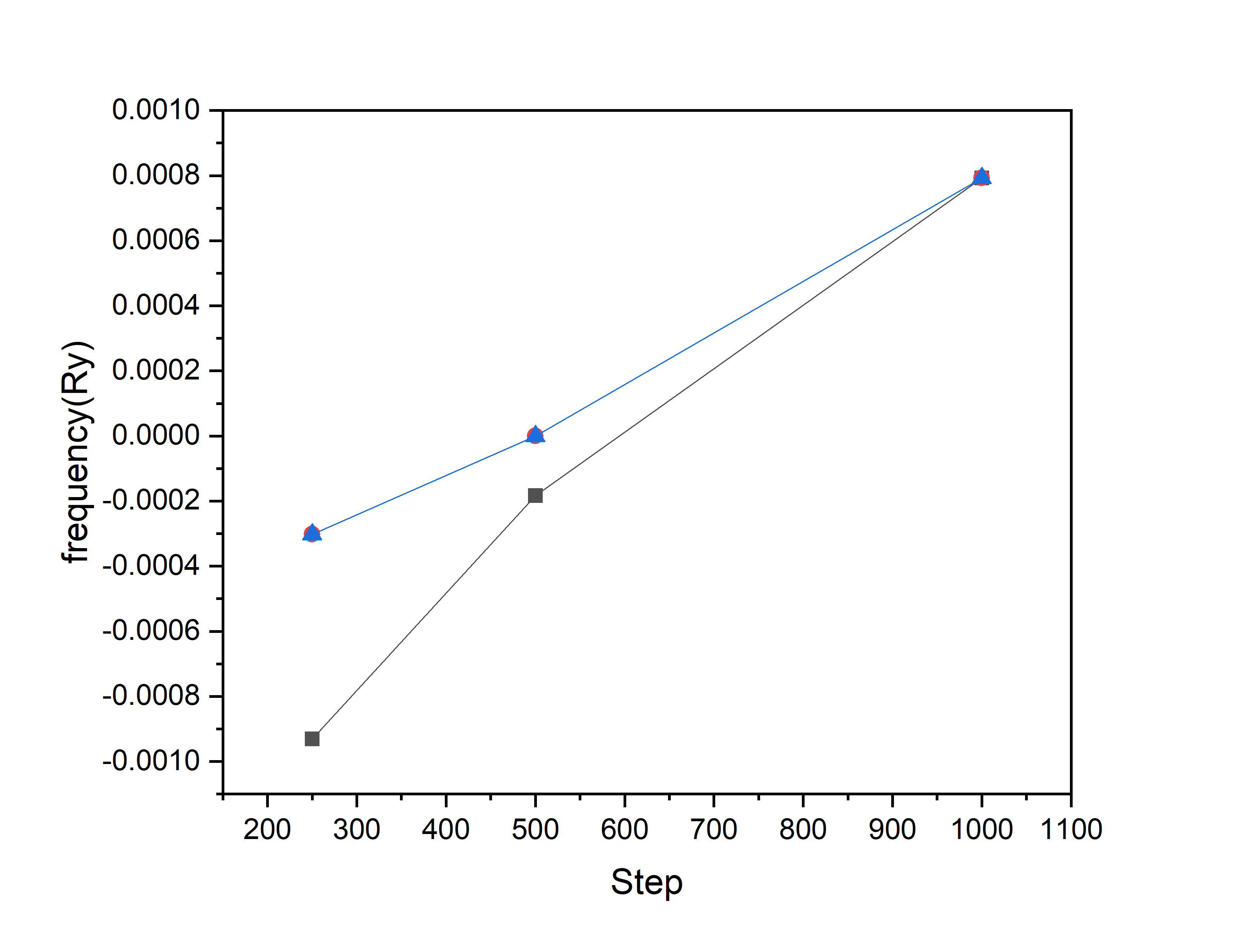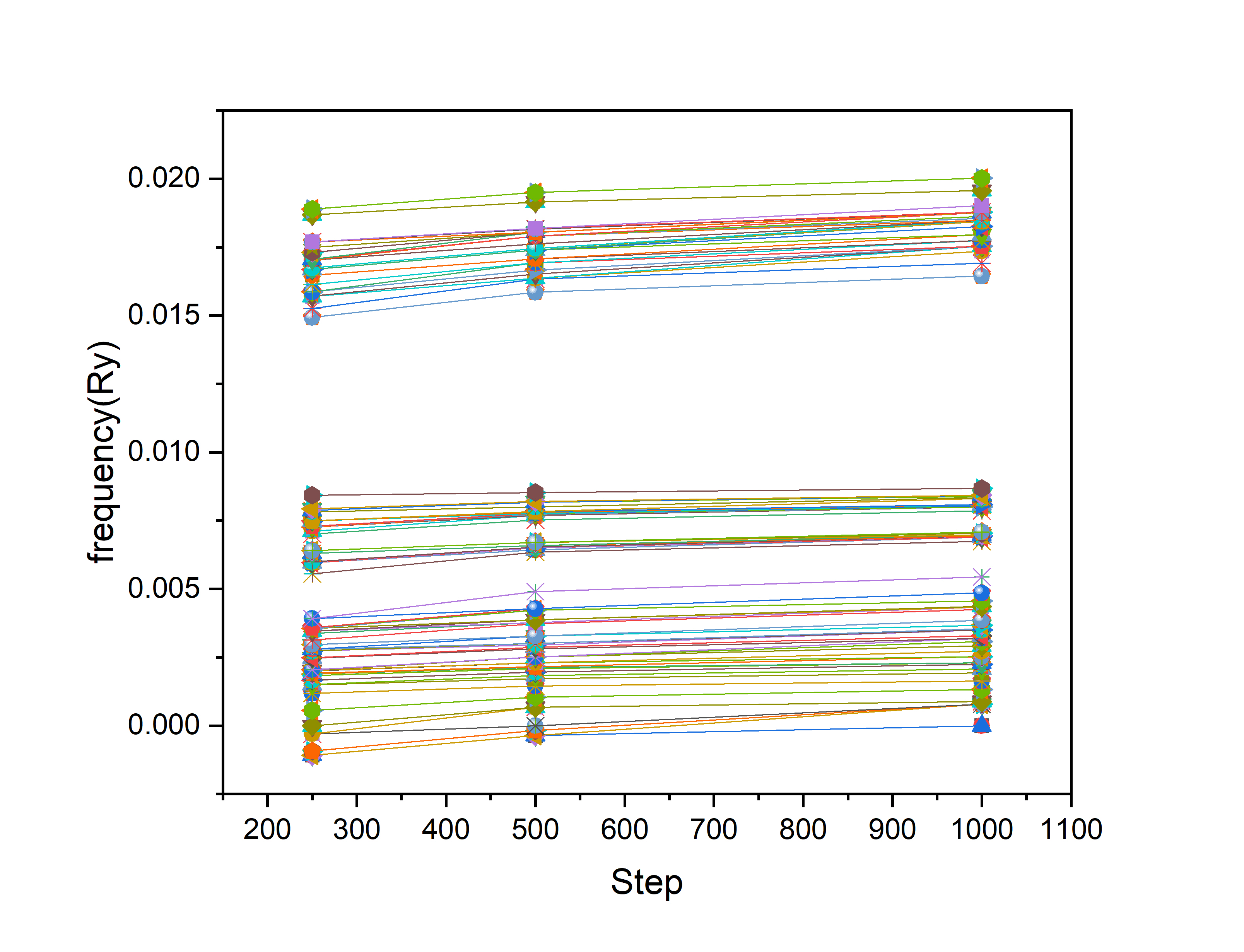 In order to speed up the minimization probably you need to increase the steps in the steepest descent minimization increasing the parameter min_step_dyn to something close to 1. Bringing the gradient to 0 (~1e-6) is a guarantee that your auxiliary phonons are not updating anymore. This is good. However, as the method is stochastic, this does not mean that this is the solution. The best practice is to take one half of your population, repeat the minimization, and see if the final converged result agree with the result obtained with the full population. Diego is right about the Hessian. We usually plot the value of the Hessian eigenvalues as a function of the number of configurations and see if the eigenvalues are converged with the number of configurations. |