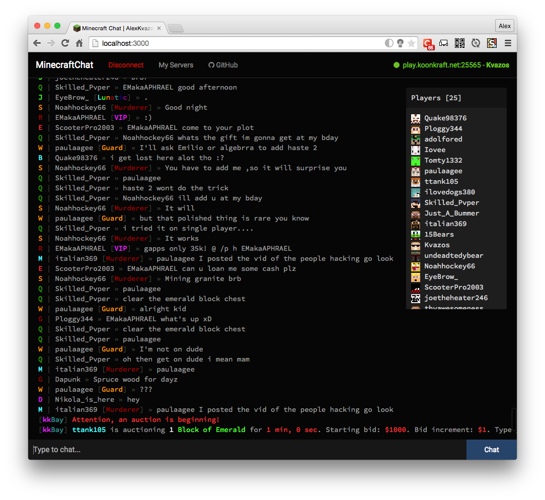 Web based Minecraft chat client for 1.8 servers.