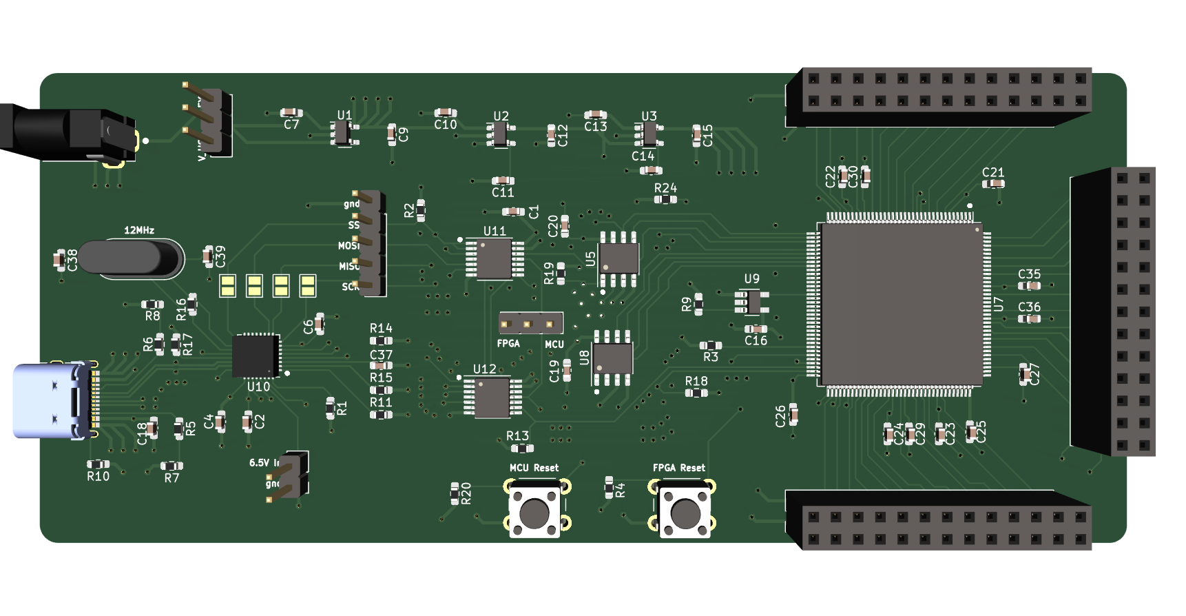 - USB-C for configuring the FPGA using IceBoard Programmer