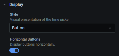 sudo service grafana-server startThe timepicker can be configured to display buttons (vertically or horizontally), or as a dropdown list.