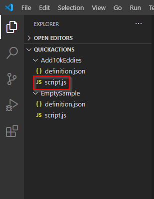 Now you can open the "QuickAction" folder in Visual Studio Code.