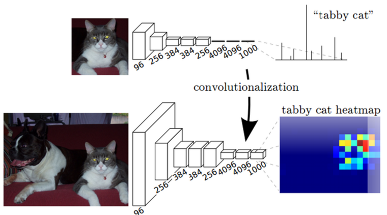 - 기본 아이디어 : fully connected layer를 1x1 convolution으로 간주(convolutionization)