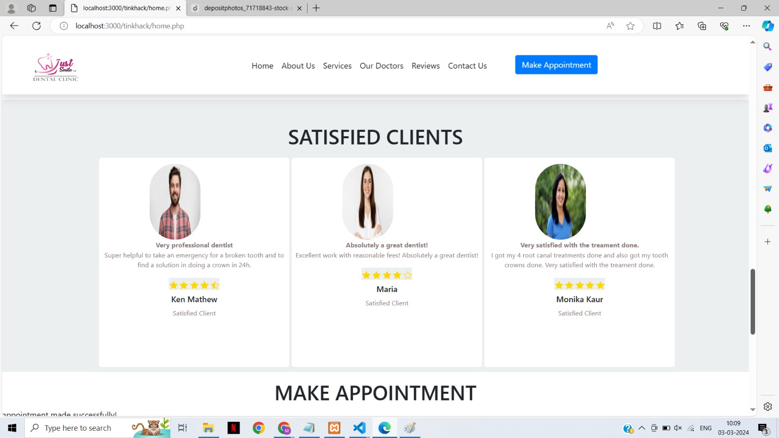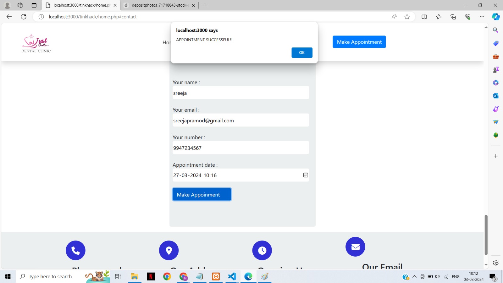 - After making the appointment a dialog box appears which says if the appointment made is successful or not.