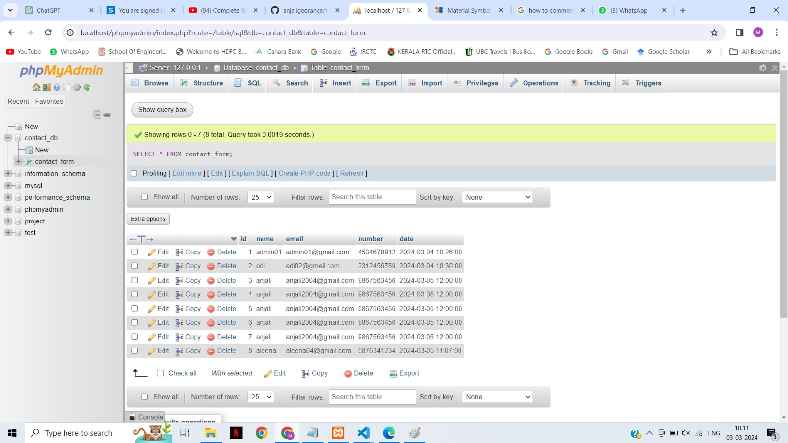 - In phpmyadmin page, create a new database from the left panel and name it as 'contact_db'