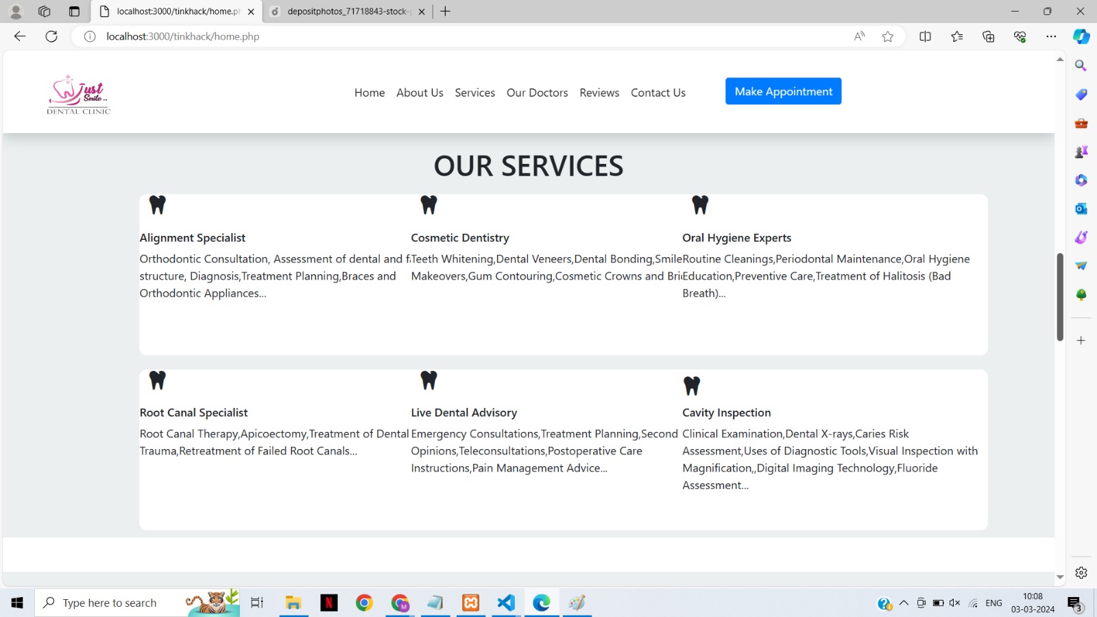 Patient Management System for a Dental Hospital. It is made using HTML, CSS, Bootstrap, JavaScript, PHP and MySQL. Specifically made for Tink-Her-Hack 2.O . The links of the images and demo video are attached.