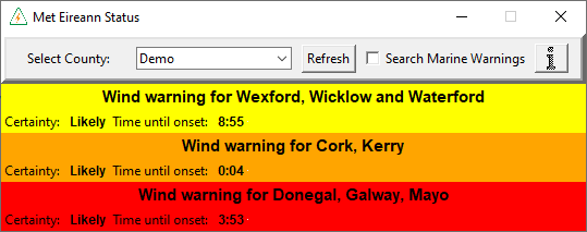 Downloads the latest Met Eireann weather warnings from their api and displays it visually.