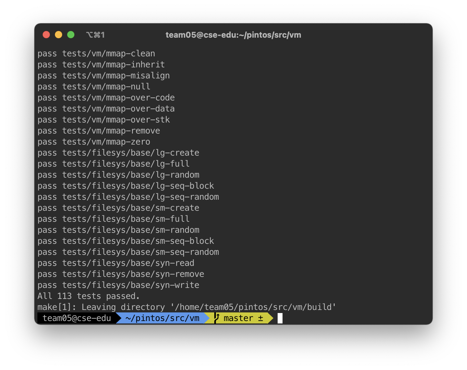 }이전 프로젝트 2에서, 파일과 관련된 시스템콜을 구현하면서 프로세스가 종료될 때 모든 파일을 닫아주는 부분을 구현하였다. 이와 유사하게, 현재 프로세스가 연 MMF들은 프로세스가 종료될 때 모두 닫아주어야 한다. 이를 위해, 현재 프로세스의 mapid를 기준으로 모든 현재 프로세스에 할당된 모든 memory-mapped file들에 대해 sys_mummap () 을 호출하여 모든 파일들이 정상적으로 닫힐 수 있도록 구현하였다.