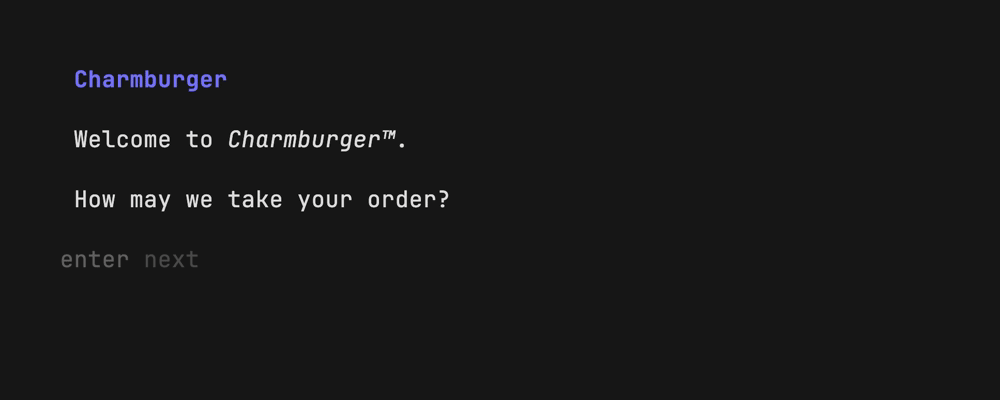 go get github.com/charmbracelet/huh@latestAccessible mode: now more accessible