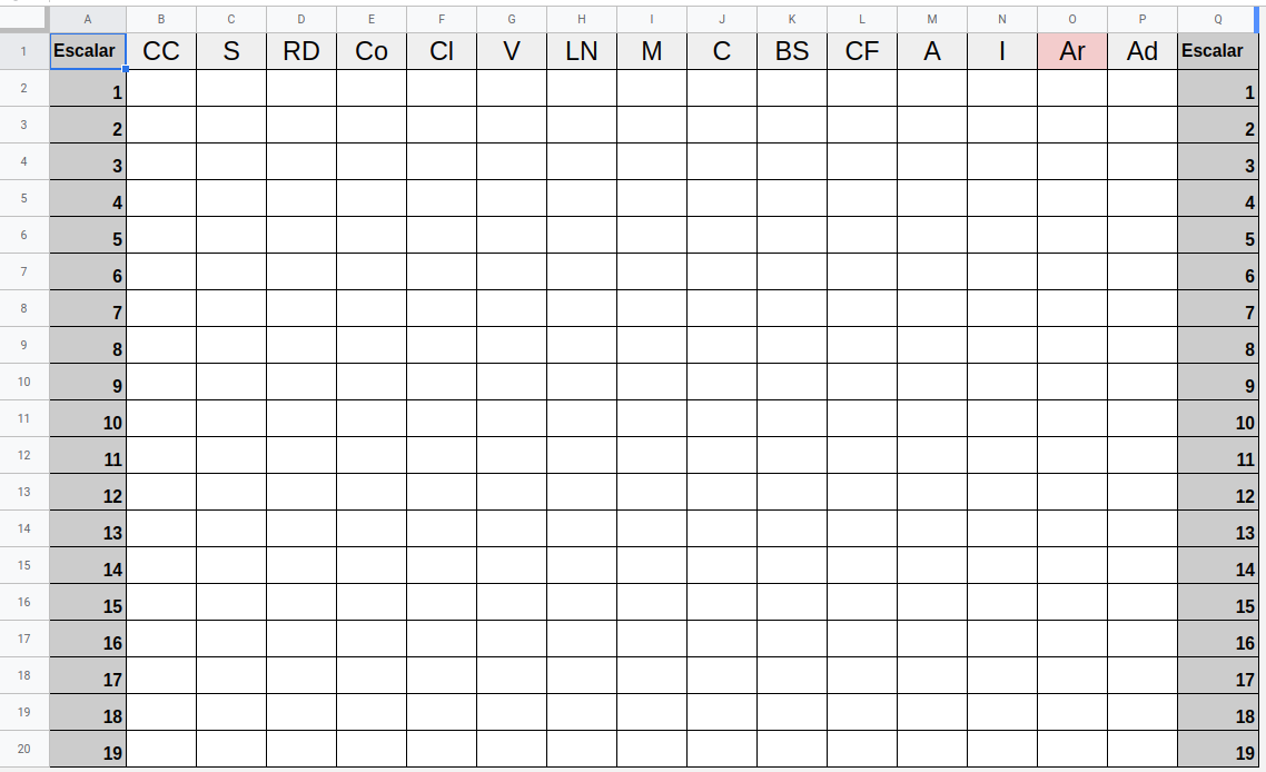 No están listas las 27 plantillas en blanco, hay que usar la función duplicar de las planillas de google drive para las que falten. Muestra