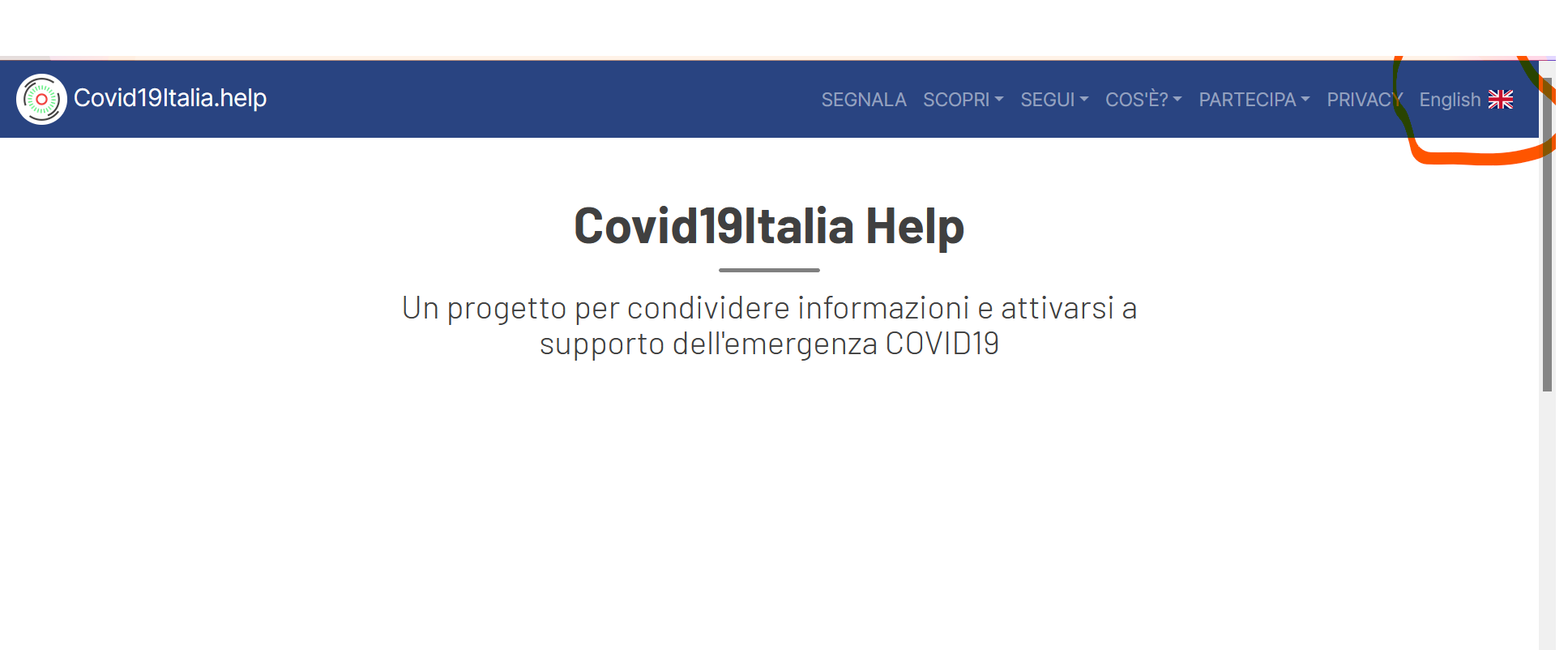 @iltempe Per migliorare la fuibilità del sito, sarebbe meglio che in home page comparisse ben visibile il pulsante per passare da lingua inglese a quella italiana, così come era sul sito Covid19Italia.help (vedi immagine).