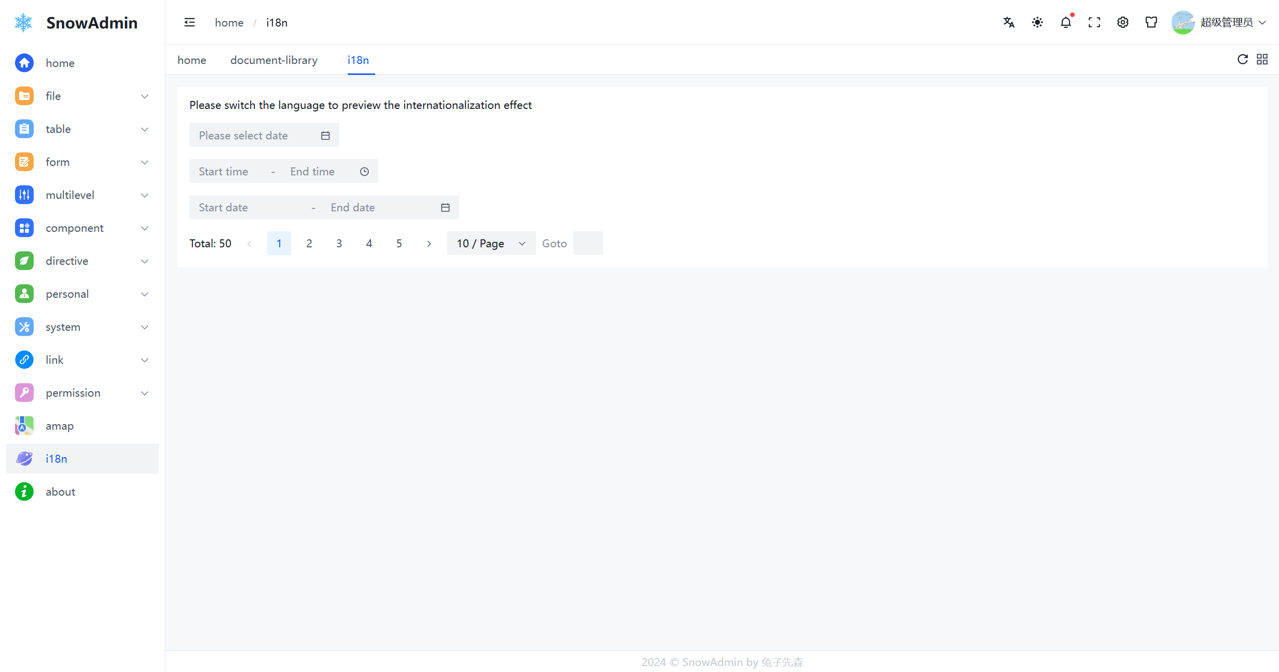 SnowAdmin 是一个清新优雅、高颜值且功能强大的后台管理模板,基于最新的前端技术栈,包括 Vue3, Vite6, TypeScript, Pinia。它内置了丰富的主题配置和组件,代码规范严谨,实现了自动化的文件路由系统。SnowAdmin 为您提供了一站式的后台管理解决方案,无需额外配置,开箱即用。同样是一个快速学习前沿技术的最佳实践。