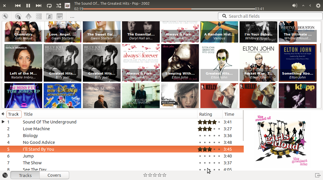 Browse your coverart albums in Rhythmbox v3 and later.