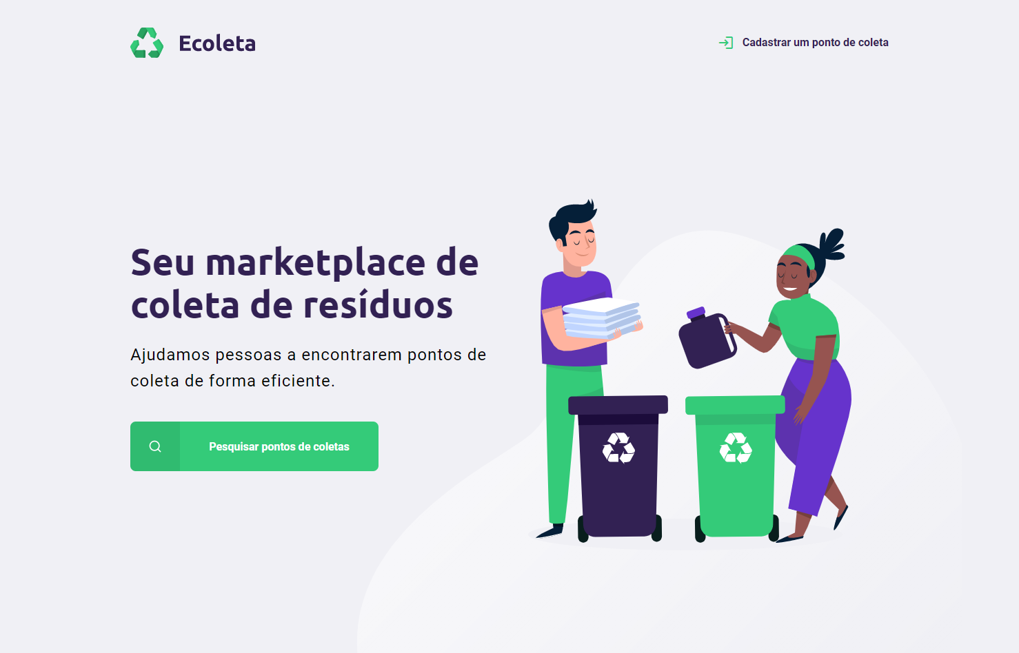 O objetivo do Ecoleta é o usuário se cadastrar e por entcontrar um ponto de coleta na sua região. O projeto possui consumo de API externa de Municípios e Estados no form.
