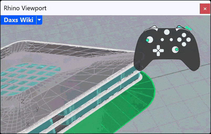 Daxs (pronounced [daˈks] - from the German "Dachs"- badger) makes navigating and interacting with Rhino feel as fluid and natural as moving inside a 3D game engine. It is designed to give Rhino a stable gamepad interface and customizable mappings, without intefering with Rhinos functionality.
