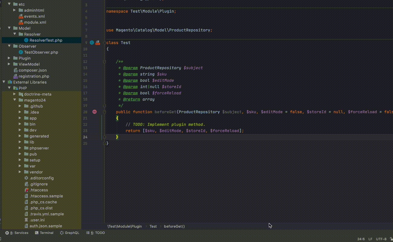 GraphQL resolver inspection in the scope of PHP class (Requires GraphQLJS plugin)