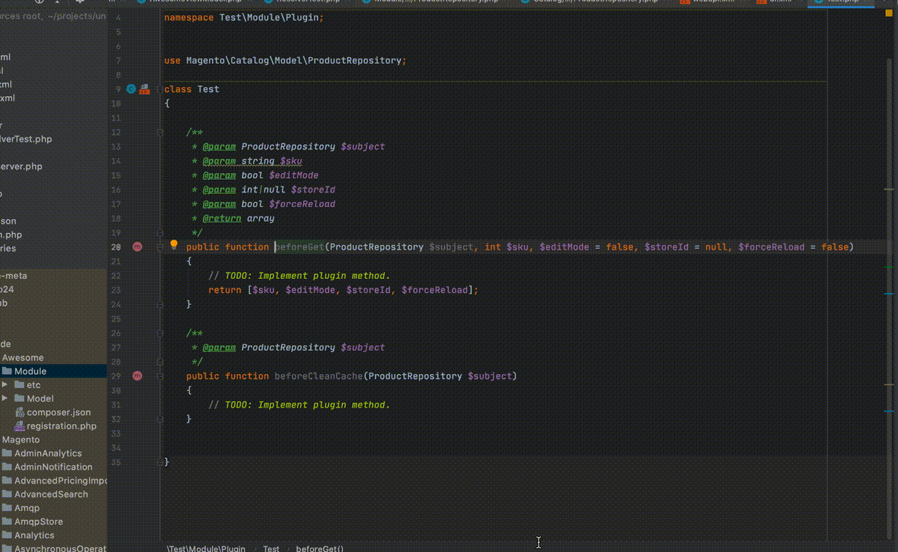 In the previous version of the plugin it was possible to navigate from the target class and method to the plugin class and method via line markers. We added line markers for the navigation in the opposite direction in this release.