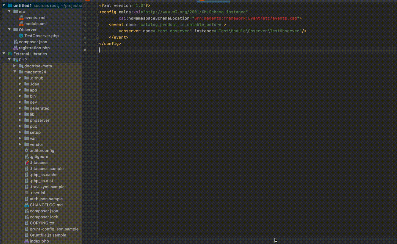 New observers can be created from the context menu. Just right click on the event name and specify the module, area, and observer name.