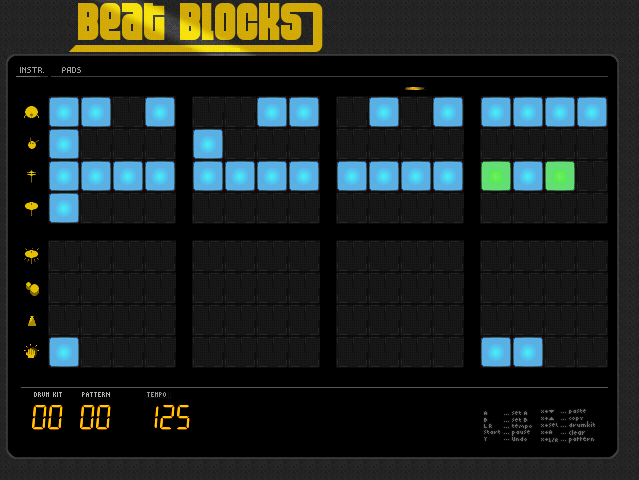 - undo, copy/paste/clear pattern available (from the gamepad)