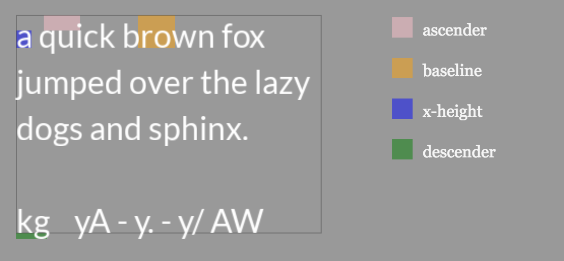 }All positions are relative to the bottom-left baseline of the text box (i.e. the last line).