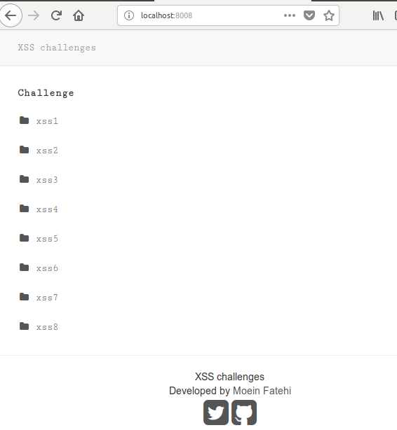 git clone https://github.com/moeinfatehi/xss_vulnerability_challenges.git - Open the main directory of the project (where docker-compose.yml file exists) and run: