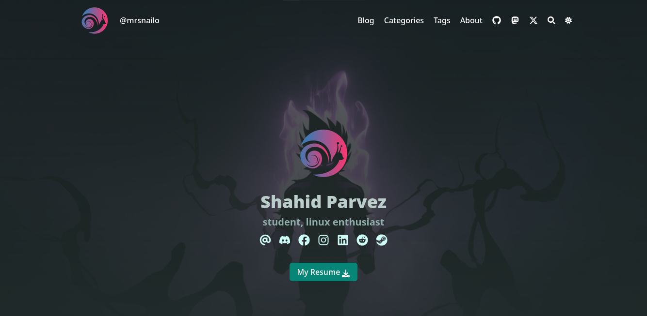 git clone https://github.com/mrsnailo/mrsnailo.gtihub.io.git - Go to the directory and Install dependencies. (Use npm /yarn)