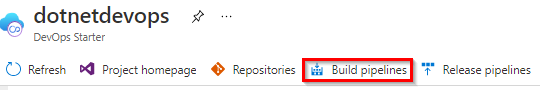 1. Select Build Pipelines from the top of the Azure DevOps project dashboard. This link opens a browser tab and the Azure DevOps build pipeline for your new project.
