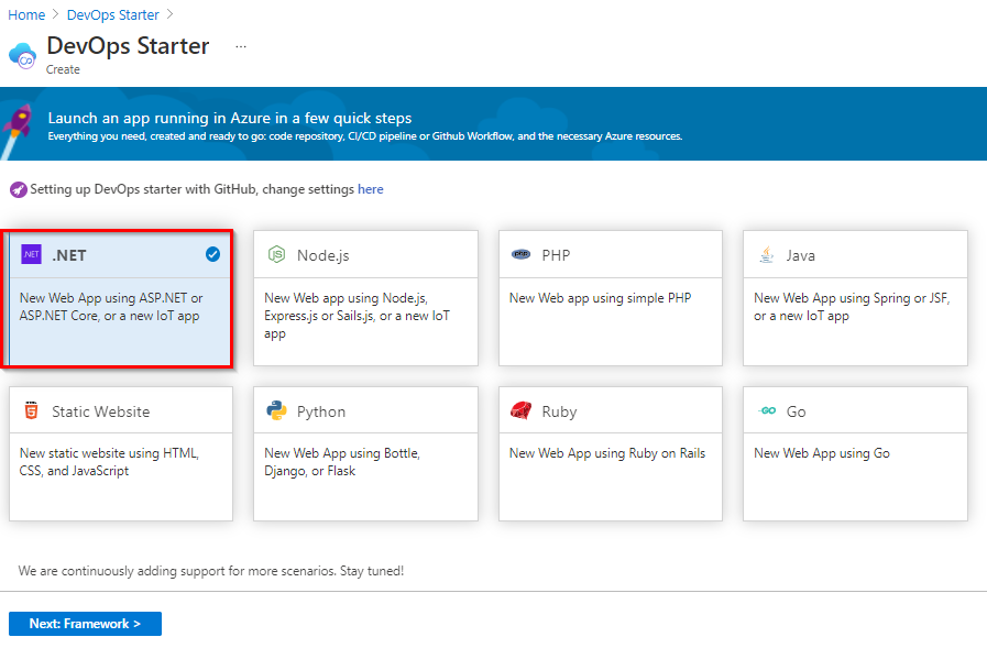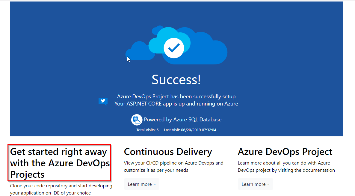 Setting up a sample ASP.NET project using DevOps Starter Project