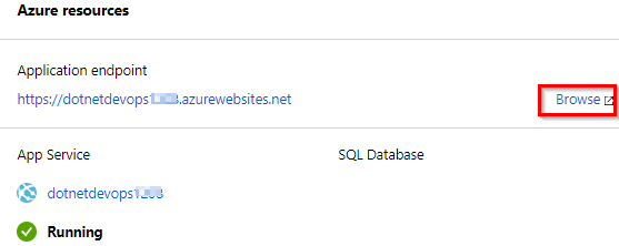 5. Once the Build and Release are completed in your browser, navigate to the Azure DevOps project dashboard. On the right side of the dashboard, select Browse to view your updated running application. You will see the updated header in the web app.