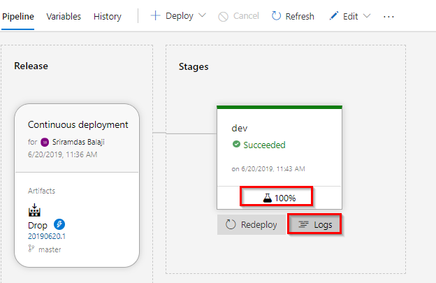 1. Select Logs. The logs contain useful information about the deployment process. They can be viewed both during and after deployments.