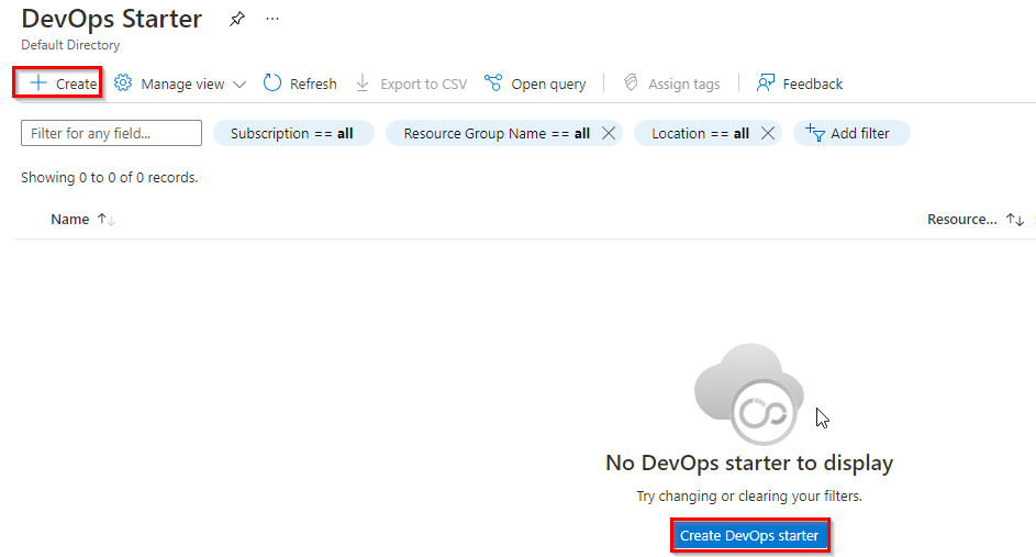 2. In the search box, type DevOps , and then select DevOps Starter. Then click on Create DevOps Starter