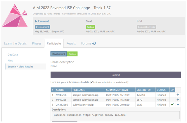 We also provide the baseline pretrained baseline-ckps and other utils like the scoring scripts. You can download here a track 1 and track 2 dummy submissions. If you want to double-check your submission please check scoring/evaluation.py, it is important to save properly the RAW images as indicated. Read more details below.