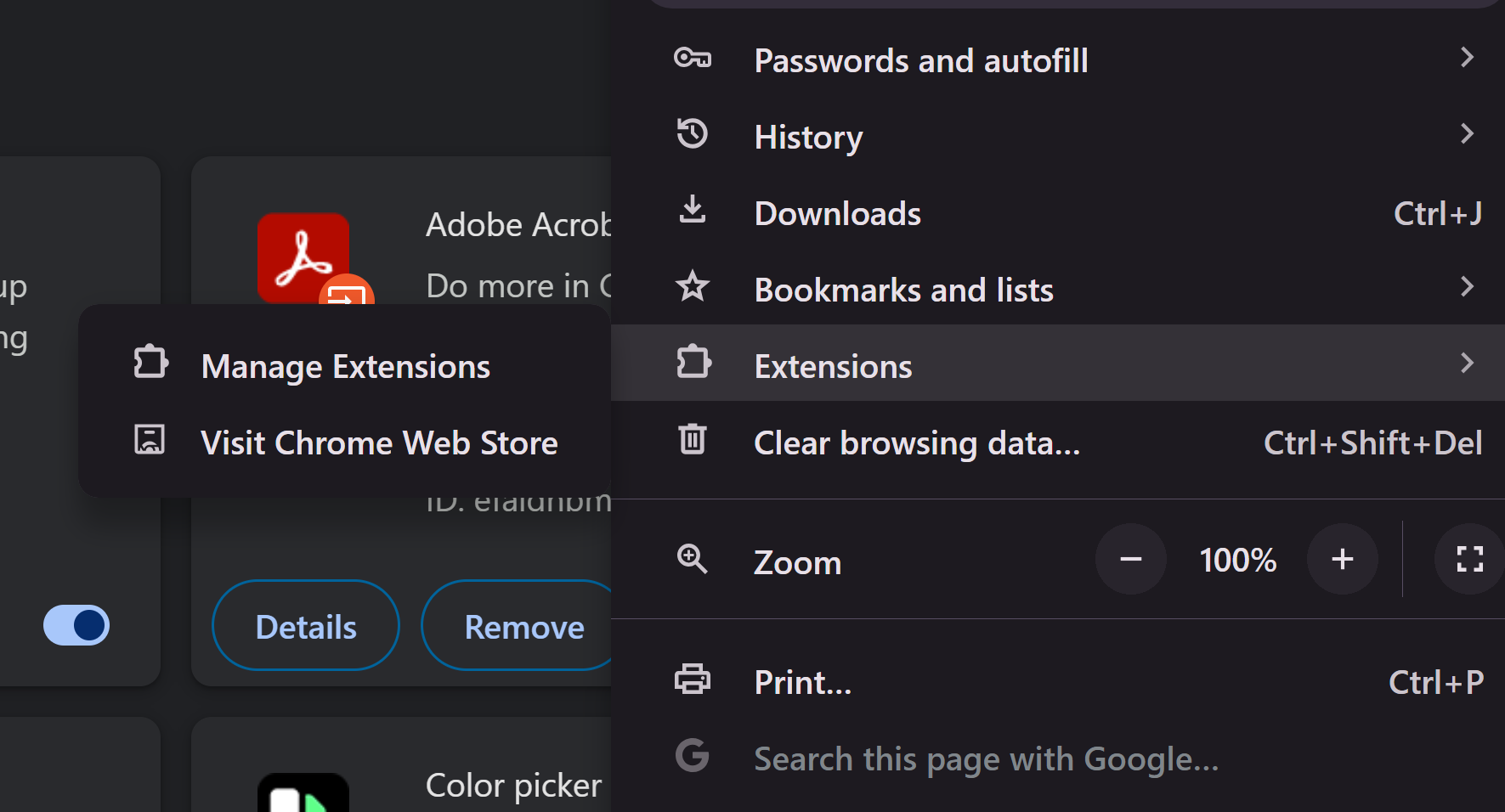 Click on Manage Extensions