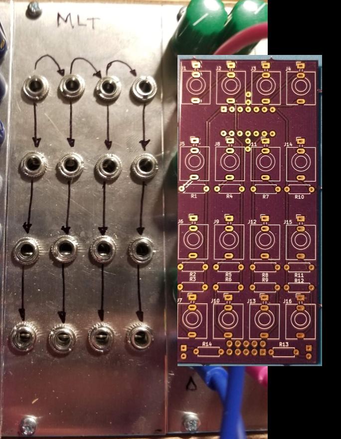 1u 1->3 mult: schematic finished, pcb layout in queue I'll probably never get around to finishing this one, since I already did the BiggerBetter THT mult above. If you want a 1u mult bad let me know and I'll finish it up sometime while I'm supposed to be working :D. But really, if you want a 1u mult that bad you can probably figure it out yourself from muffwiggler forum posts.