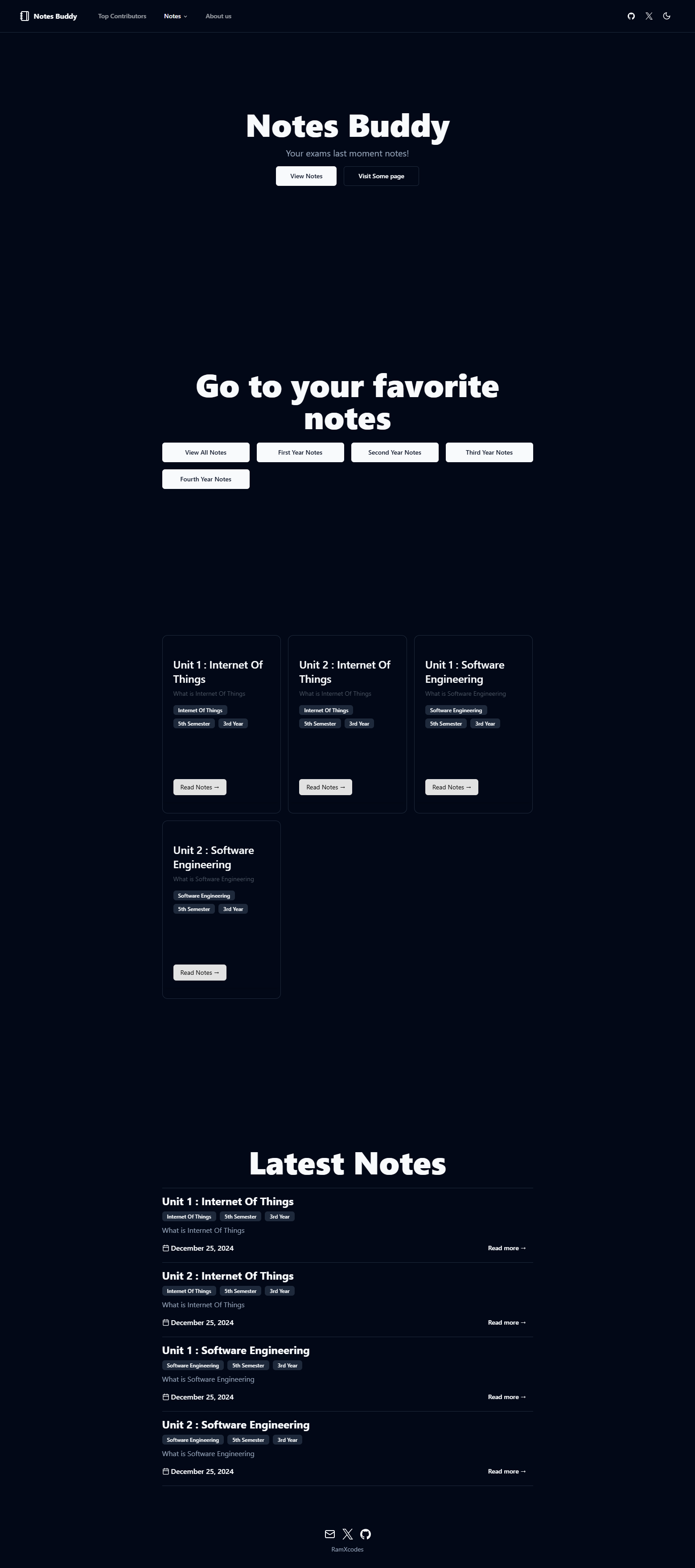 Notes Buddy is a platform for students to access well-structured, MDX-based notes tailored to their courses. It's lightweight, fast, and optimized for readability and accessibility.