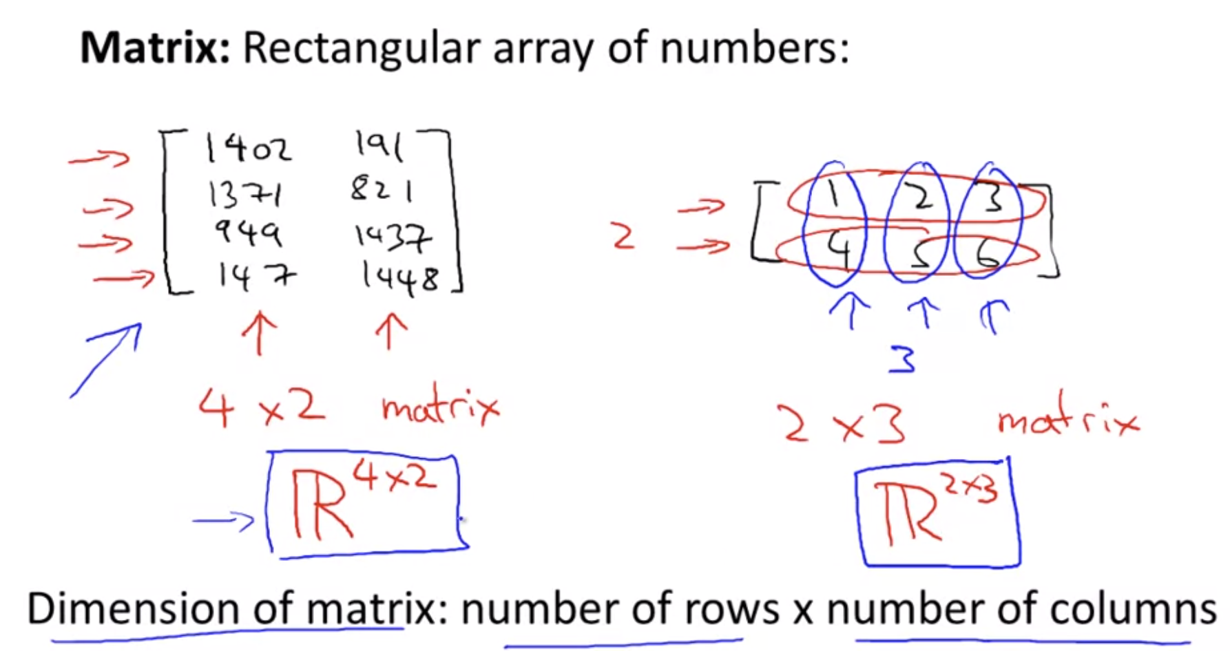 - 행렬(Matrice)의 크기는 "세로 x 가로" 로 나타낸다.